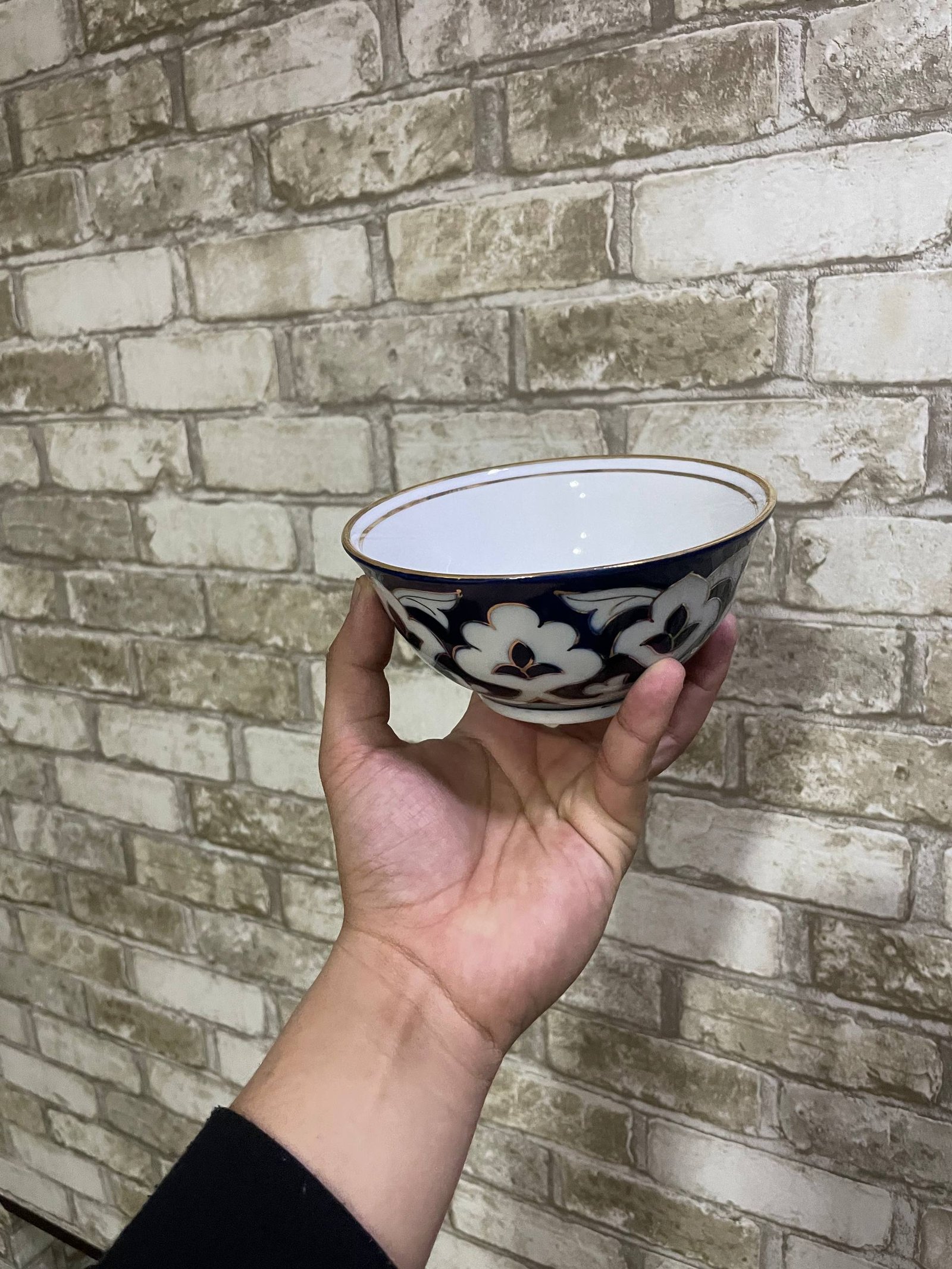 The Paxta bowl is a refined handcrafted artwork created by skilled artisans. Featuring elegant hand-painted floral patterns on a deep blue background, enhanced with real gold accents, these bowls reflect traditional craftsmanship and artistic precision. Each piece is individually painted, making every bowl truly unique.